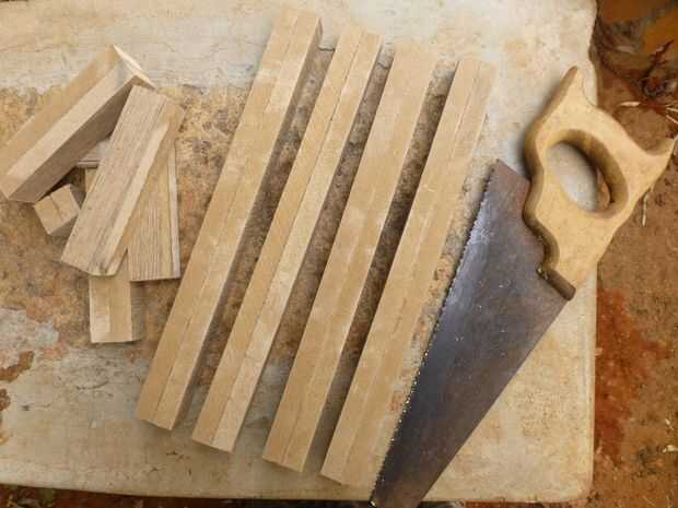 • Cortar todas las piezas a 35 centímetros de longitud. Eliminación de piezas de ambos extremos le superficie uniforme.