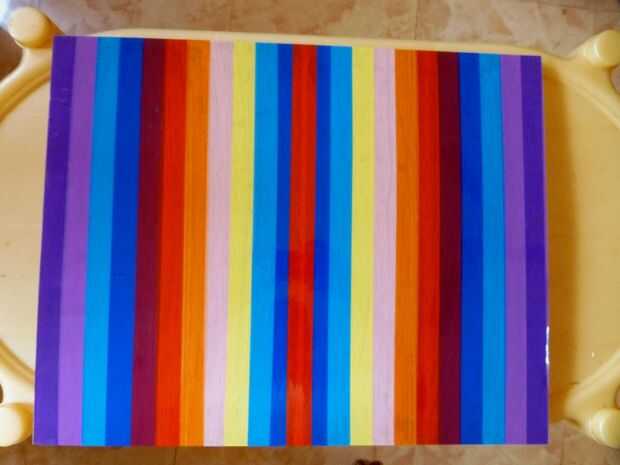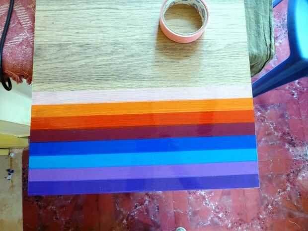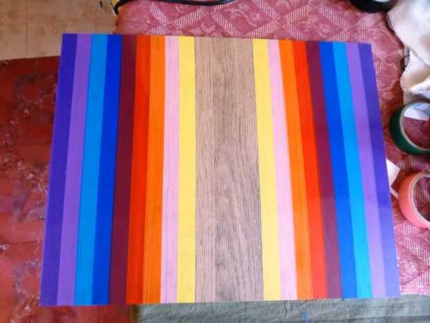 Ahora estamos listos para pegar cintas de celofán de color a la mesa
