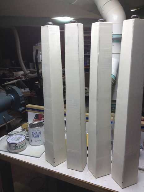 Porque estos patas eran rescatadas tenían viejos agujeros en ellos que fueron llenados antes de pintar. En retrospectiva, probablemente habría parecía fresco a dejarlas. Enarenó ligeramente las piernas con lija de grano 100 y 150 que había alisado sin la eliminación de todas las marcas de sierra. Una capa de pintura de tiza y 2 capas de Briwax claro se utilizan para acabar las piernas. Briwax amarillos el acabado un poco que entre la pintura muy bien. Entre las capas de Briwax arena a través de la pintura en algunos de los bordes con papel de grano 100 a mostrar desgaste.
