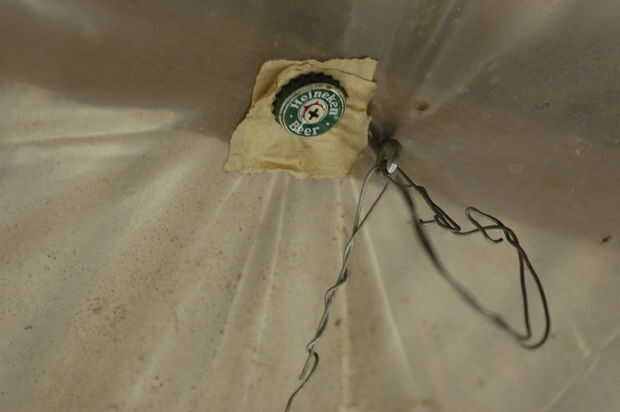 La nave está rodeada de floración y fructificación de las plantas. Le gusta el ambiente rústico para que lo hace lo menos posible para cambiar el edificio. El techo gotea por lo que se pone encima de plástico debajo de la azotea. Une con tornillos a través de tapas de botellas de cerveza de sujeción en las piezas de la cinta en el plástico. Hay "tack papel" en el suelo para capturar cualquier polvo suelto pero ahora es solo un piso, la adherencia fue utilizada hasta hace poco.