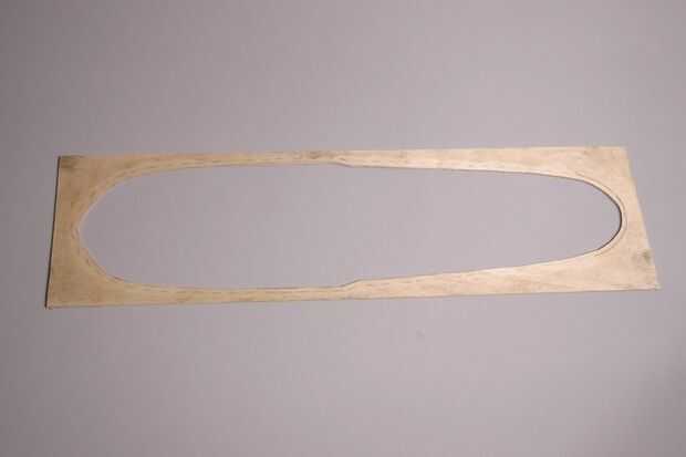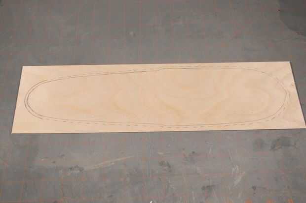 El dibujo es ser caucho cementado a la madera contrachapada para el corte en la Sierra de calar. El dibujo no es tan amplia como la madera contrachapada. Cortar el dibujo abajo de la línea central y alinee la línea de centro con el borde de la madera contrachapada. Alinee el extremo delantero con el borde delantero y el extremo de popa con el borde de popa. A continuación, usted puede recortar el centro de la muesca área de la Sierra de calar.