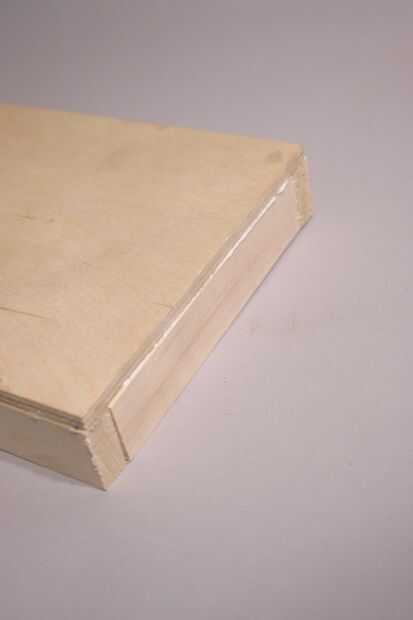 La pieza 2, que se muestra en la foto 1, no tiene ningún muescas cortadas en él, pero el área de centro todavía se corta y se quita. Esta pieza se pega en la parte inferior de la pieza más gruesa y sirve como una plataforma para los marcos para sentarse cuando se pegan en la plantilla. Utilice el dibujo con el nombre "Edificio plantilla estante" como plantilla para cortar el centro.