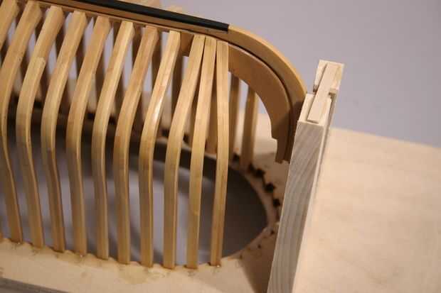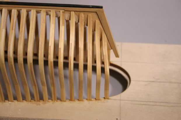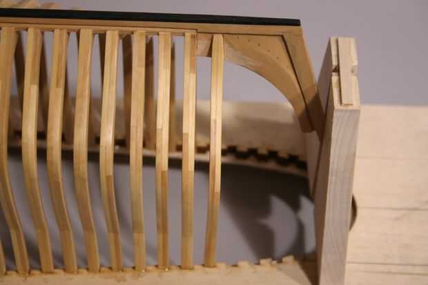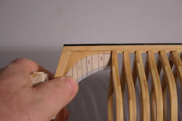 Los marcos de la cant de popa son diferentes que el arco de los marcos en que lo hacen no pero uno contra el otro. Por lo que se emplea un patrón (tomado del dibujo marco Plan) para marcar la ubicación de cada fotograma. Los marcos de popa cant no tienen como pronunciadas de un corte en el pie del marco o con bisel. La secuencia restante de fotos debe explicar cómo se pegan estos marcos.