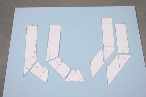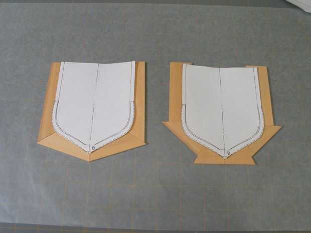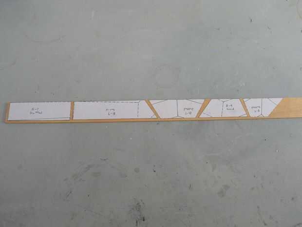 La foto 1 muestra la forma de las piezas en el marco en blanco que debe ser cortado. En el lado derecho de la foto ves las piezas de medio marco los espacios en blanco, marcos de 24 a 34. En el lado izquierdo ver las piezas para el marco en blanco para los marcos 1, 21, 22 y 23. El marco en blanco para los marcos de 2 a 20 es similar al espacio en blanco de Marcos 1, 21, 22 y 23.