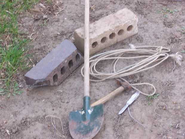 1. martillo, mazo o algo fuerte a las estacas en el suelo