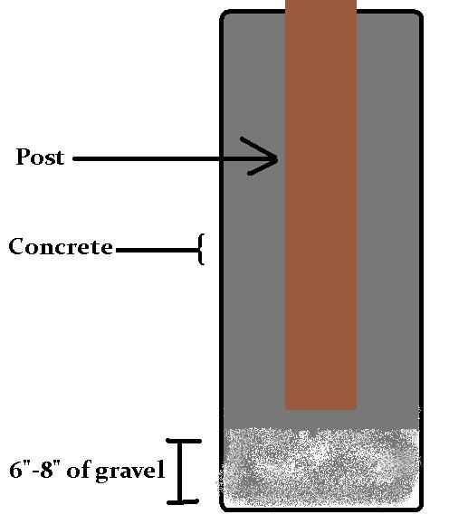 En a los agujeros había descargado algunos grava. Esto ayuda a evitar que tus posts de descomposición hacia fuera. Me gusta poner 6'' - 8'' de grava por mis agujeros. Una vez que usted descarga la grava en ti soltar su 6 "x 8" x 12' puestos por los agujeros y utilizar los puestos como una varilla de apisonamiento grande para embalar la grava hacia abajo.