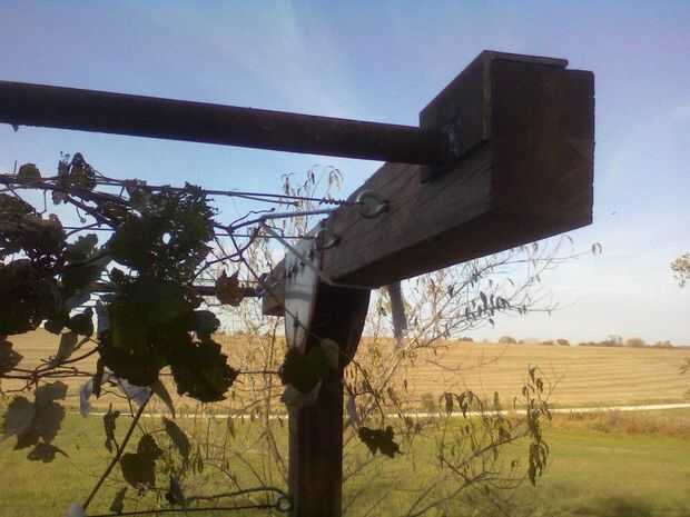* Nota: No es necesario instalar los soportes de ángulo y tubo, pero encuentro preocupación allí es la posibilidad del alambre apretado y peso de las vides de retirar los puestos de nivel, lo que significa que nunca sería capaz de mantener apretados los alambres de la espaldera y las vides podría caer y dañarse. Tal vez estoy paranoica y sobre asuntos complicados pero después de 3 inviernos los cables arranco todavía como cuerdas de guitarra.
