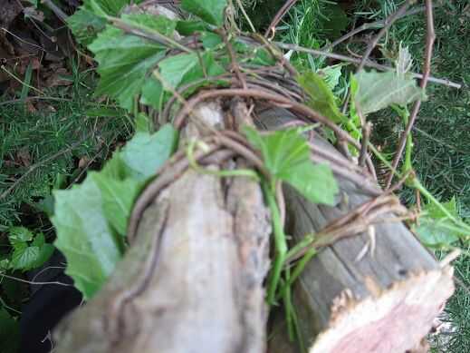 El amarre es más bajo y alrededor y detrás otra vez. Estire las viñas como como se atreven y meter los extremos a la envoltura.