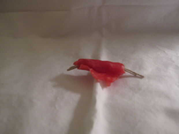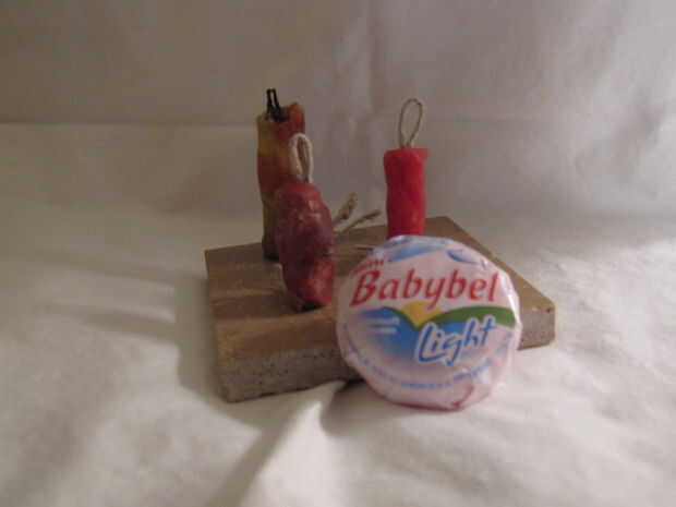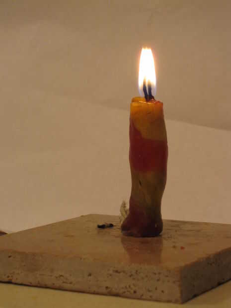 En primer lugar, se toma la cera y aplanarla, aproximadamente uno y una mitad pulgada de alto por 2 pulgadas de ancho. A continuación, colocar la mecha en como se muestra en la figura 2. Rodillo de la cera alrededor de la mecha (cuadro 3).