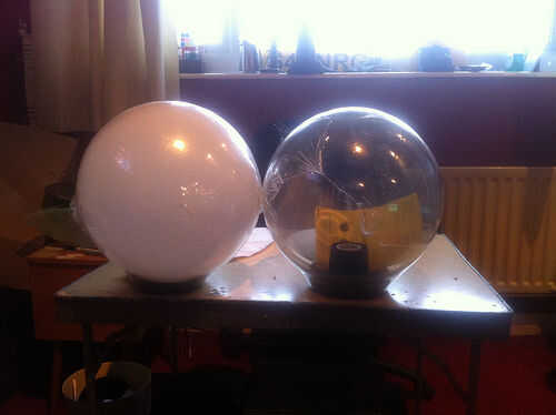 Cuando yo había terminado la boca entonces puso la parte inferior de mi cubo de basura de oficina que tenía un diámetro de 8 pulgadas, en la parte inferior del globo y dibujó alrededor de él. Asegúrese de que el recipiente está pused hasta lo más cerca posible el agujero del globo exsisiting.