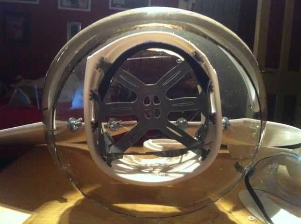 Agarra tu helemet y coloque dentro de su casco y marca cómo se sienta en la cabeza y en el que desea que éste coloca. Cuando su feliz coger la dremel y corta el casco y el fix dentro con pegamento caliente. Entonces re reforzar el palo con el plástico duro.