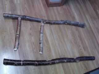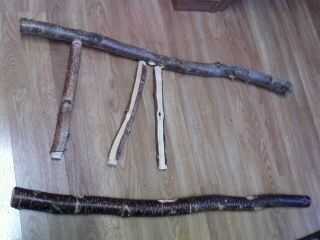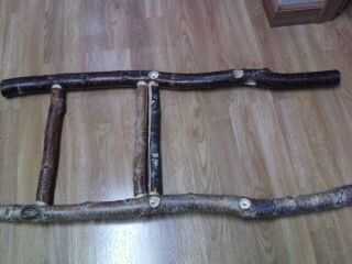 Tomar las dos partes y ponga tres palos en un lado sin pegamento aún lugar luego al otro lado en los tres extremos formando las sillas hacia atrás. Tienes dos agujeros vacíos, utilizados más adelante. Madera de un árbol doblada y deformada a veces, así que este paso es encajar los tres pedazos en los largos. Puede lijar el extremo de la espiga o usar una sierra para quitar algo de madera para que encajen. También puede perforar los agujeros más profundos sólo conseguir que encajan firmemente formando las patas traseras y la parte de respaldo de la silla.