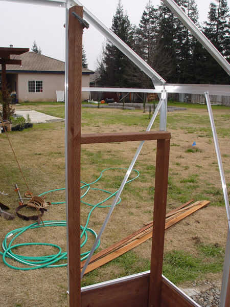 B) Añadir una 75" verticales de la puerta de correos y un banco horizontal. Entonces, usando el material de 2 x 4, construya el soporte del Banco/estante central y un apoyo similar en el extremo opuesto del invernadero en el alto y ancho que desee para sus estantes. Mi estante superior es 48" sobre el piso y 24" de ancho, pero se pueden construir para satisfacer sus propias necesidades.