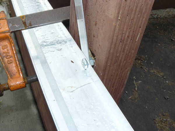 C) hay una serie de puntos donde resaltarán los pernos para el marco de aluminio en el marco de 2 x 4.  Para mantener alineados correctamente cualquier taladro el área detrás del bolt o use un formón para quitar suficiente madera para que no se obstaculice los pernos.