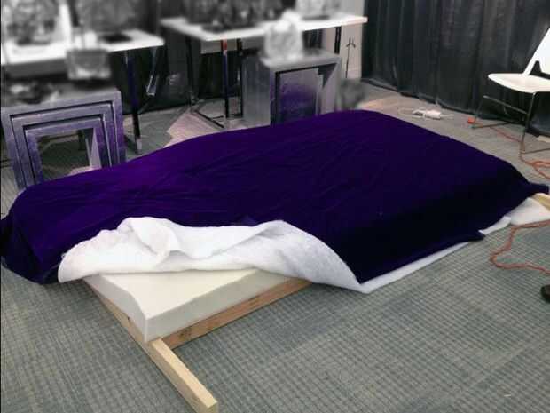 En este punto; Si desea utilizar algunas grapas para virar temporalmente la tela y guata en lugar, usted podría. Sin embargo, encontré la textura de la espuma y el bateo e incluso la tela significaba que todo permaneció bastante bien en su lugar.
