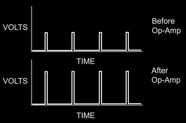 La señal de "encendido" es cuando el voltaje alcanza más allá de una tensión de umbral (la parte superior de la onda cuadrada). No te preocupes la tensión umbral, porque vamos a usar amplificadores operacionales para aumentar la amplitud de la señal. Pero básicamente la parte superior de la onda cuadrada está en "on" y la parte inferior largo en casi 0 voltios es "off". Cuando la bobina está "sobre" la energía fluye libremente en el circuito primario. Una buena analogía es un juego de patio todos los días; Imagine que una forma de balanceo representa la energía en el condensador y que hace pivotar al revés representa la energía en el inductor (bobina primaria). Cuando swing, energía va hacia adelante y hacia atrás, pero ir ida y vuelta requiere comenzar empujando el columpio. Cuando la energía fluye en el circuito primario (la fase de "on") es análoga a alguien empujando.