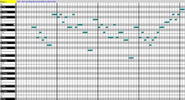 Descargar Anvil Studio y un archivo .midi de su elección. Abra el archivo .midi usando el programa. Se le dará una representación gráfica de la canción de su elección, y verá qué notas jugar Cuándo y durante cuánto tiempo (esta es una buena referencia). Esta es toda la información necesaria codificar una canción! En el código hay una tabla de notas que yo previamente he codificado en, por lo todo lo que tienes que hacer es especificar una lista de las notas que se juega en su canción en la sucesión y para cada nota, especificar la duración juega insertar descansa. Después de algunos intentos y pruebas, usted encontrará eventualmente su canción codificada comenzará a parecerse a lo que quieres. Usted puede jugar con hacer tus propias canciones hasta que estés satisfecho.