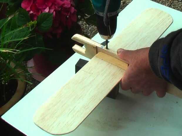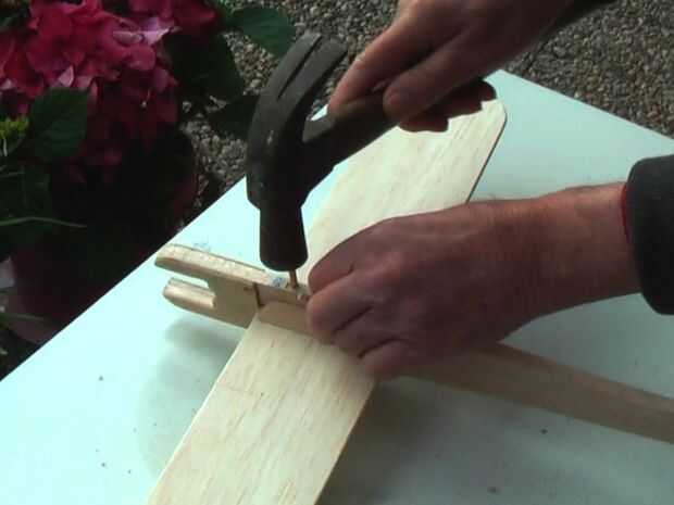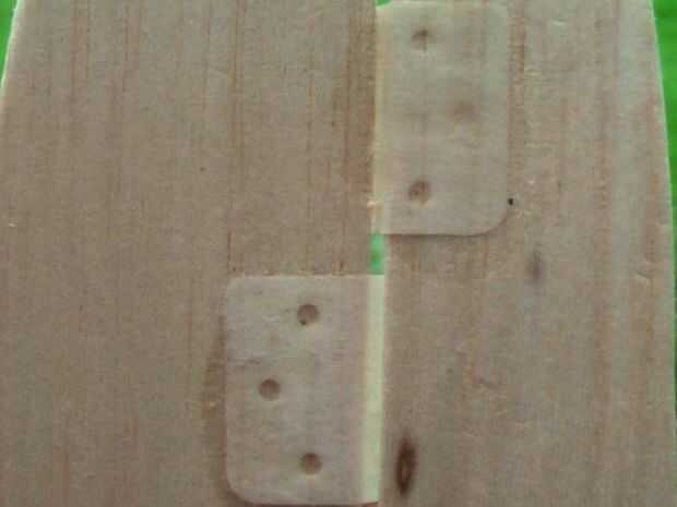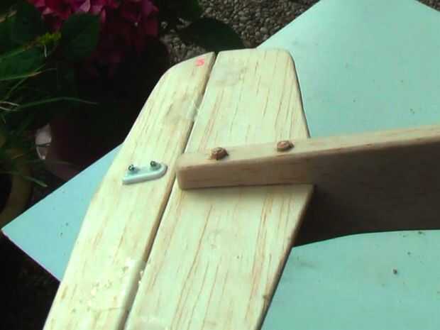 Antes de colocar las alas, elevador y timón en el fuselaje puede pintar el modelo con varnisch de acrílico transparente, como imprimación. La pintura en capas finas y a veces más. Salida de línea y corregir la alas, elevador y timón relacionadas el fuselaje antes de colocar las clavijas. Para las bisagras del elevador utilicé trozos de fibra muy fina. Utilice siempre el mejor pegamento para el trabajo.