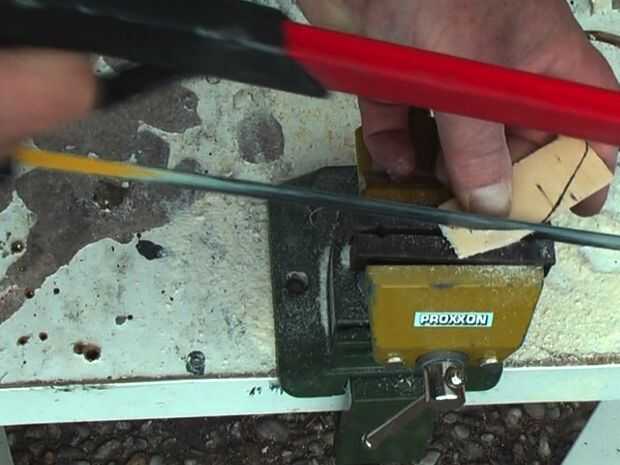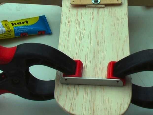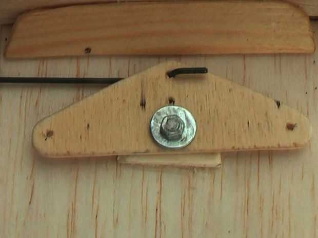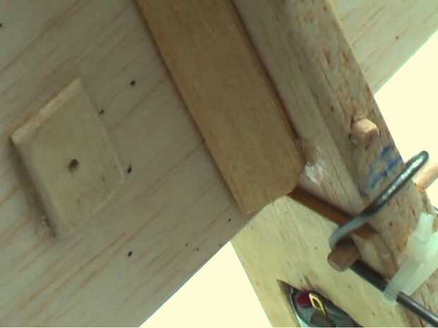 Ahora es el momento para construir el sistema de control de elevador. Necesitamos un vaso de forma de triángulo, una varilla delgada y una pieza de la palanca del ascensor. El vaso está hecho de capas delgadas, la pieza de la palanca que compré en la tienda. La barra de acero es de 30cm o 1 pie de largo. Se ha hecho exactamente para mantener la posición neutral. Para la guía del sedal elegir perfil cuadrado de aluminio de 1cm y 1mm o 0,4 pulgadas, espesor 0,04 pulgadas. Uso anillos en 3mm o 0.12 pulgadas perno y tuerca, para conectar el vaso con el ala.