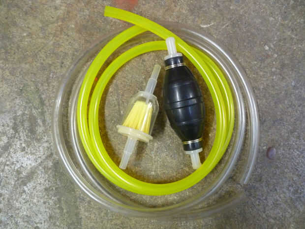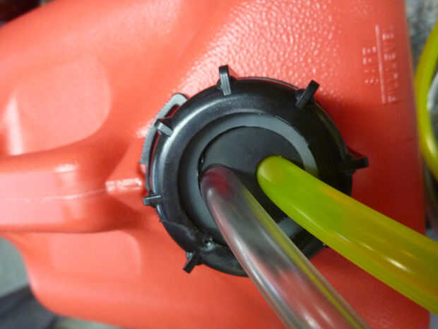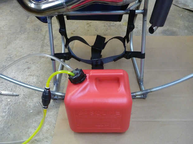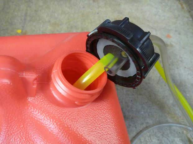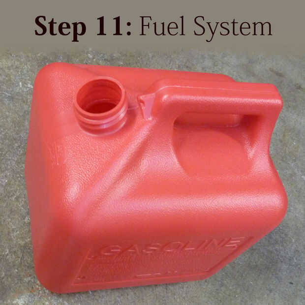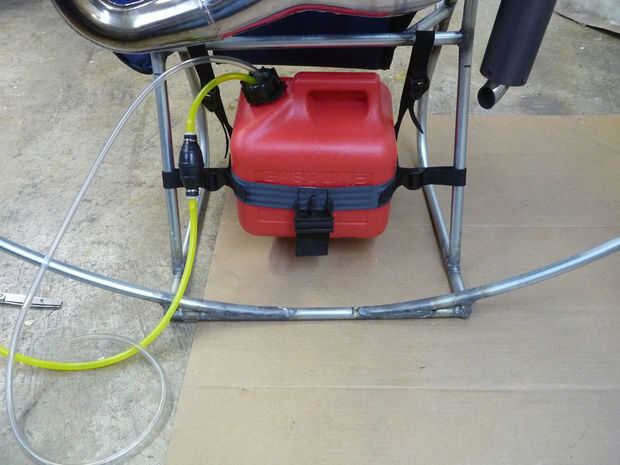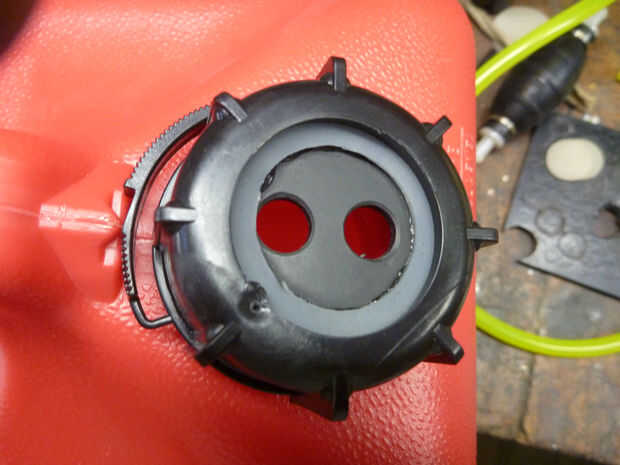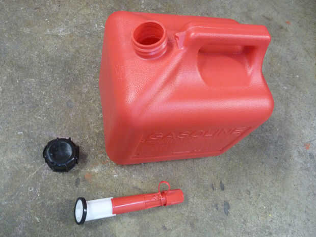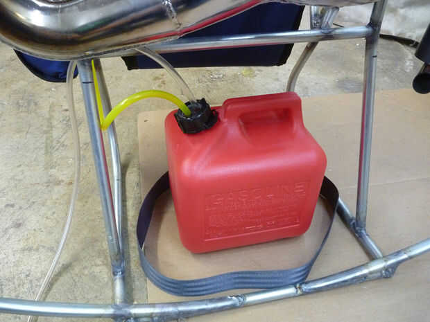 Una lata de gas de plástico es la solución más fácil y más barata para un proyecto DIY como este. Un tanque compuesto puede ahorrar un par de onzas, pero sin duda no vale la pena el tiempo o costo de lo que estaban buscando para hacer. He probado algunas formas diferentes y encontró que uno St cabe mejor en mi marco - era cerca de $11 en una ferretería local