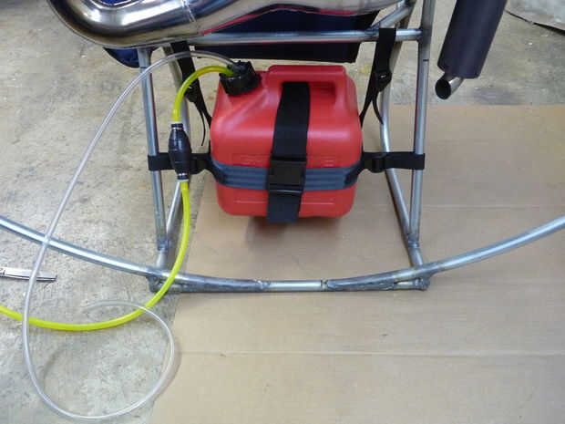 Dependiendo del carburador, algunos tanques requieren alimentación, donde por gravedad como otros han construido en las bombas. Esto puede determinar que el tanque debe ser situado. La mayoría de los tanques se encuentra cerca de la parte inferior de paramotor, ya que mantiene el peso bajo. Sin embargo, algunos montar sus tanques sobre el motor de flujo de gravedad. Dondequiera coloca, debe tener un amplio espacio de la prop y dan suficiente espacio para correr para despegar a las piernas