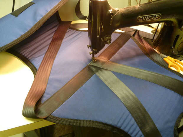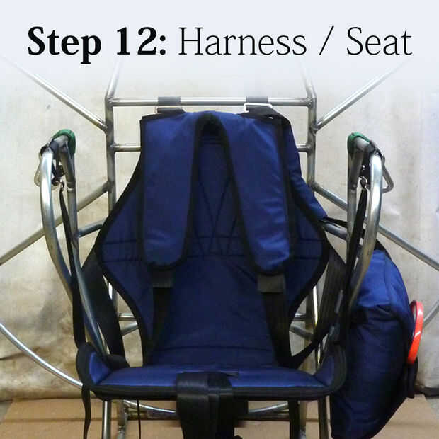 Ya que tenía un arnés de vuelo libre parapente, por lo que aprendí de una combinación existente de PPG y arneses para crear mi propio.