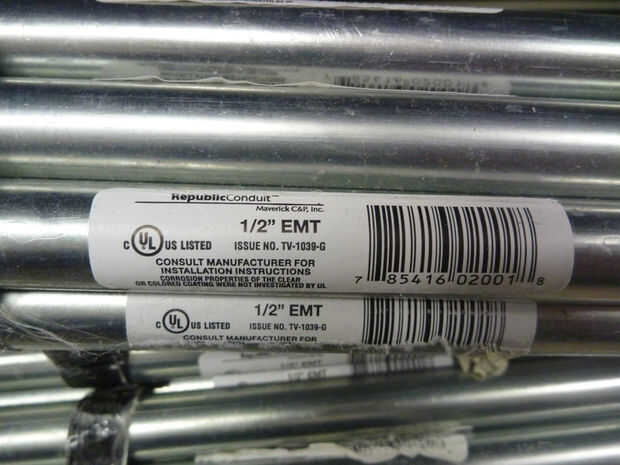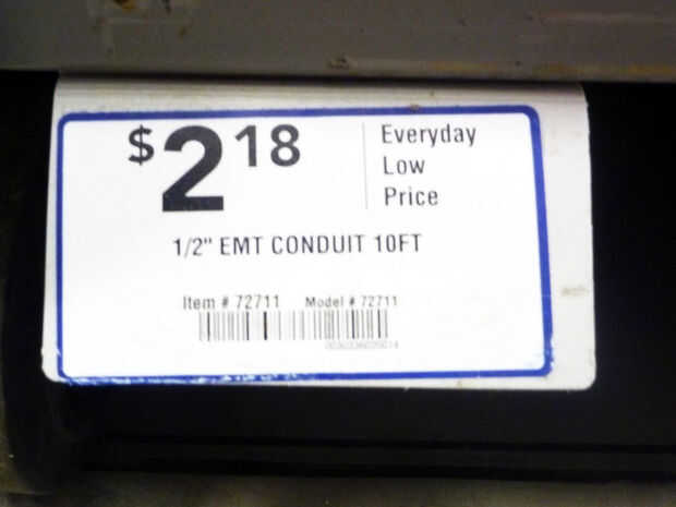 6 x 10' longitudes de conducto de EMT de 1/2"(6 x $2,18 = $13.08 - Lowes, la mayoría de las ferreterías)