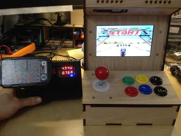 Había cableado del convertidor de MeanWell y me funcionó el Porta Pi Arcade con una batería completamente cargada. Tiempo de ejecución total fue 2 h 45min con el volumen a un susurro. El convertidor de MeanWell tiene un rendimiento perfecto. El convertidor de pequeña 'gadget' hizo el trabajo, pero la frambuesa Pi de vez en cuando "hipo" cuando la CPU cambia la demanda de energía; el convertidor que suministra la energía no podría transición lo suficientemente rápido como para que coincida con esta demanda. Si usted piensa que usted quiere tomar en este proyecto, recuerda: obtienes lo que pagas!