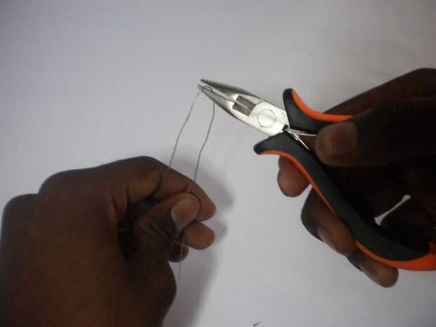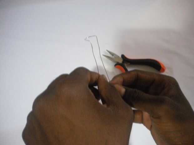 Patas delanteras : los tres primeros cuadros muestra la formación de las patas delanteras con una pinzas de punta. Doblar el alambre en forma de V como se muestra en la imagen. usted tendrá que doblar en la forma correcta de todos modos. La calidad flexión depende del cable que está utilizando. Así que por favor lo doble como cerca del borde de la pinza como sea posible