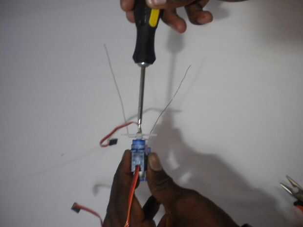 Ahora fije las patas del motor servo con la ayuda de un destornillador. Mira las fotos de fácil comprensión