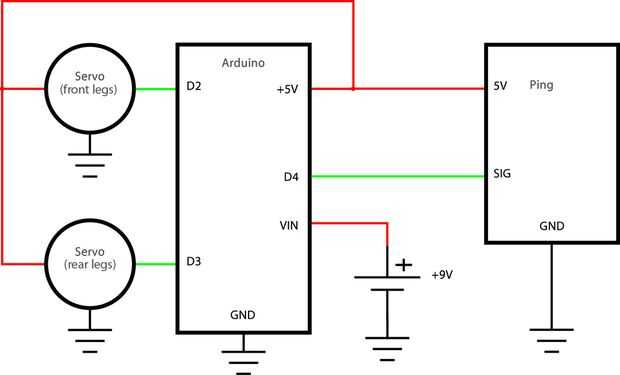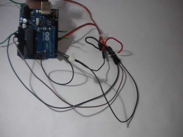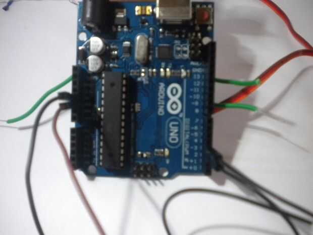 - el color medio (hilo rojo) del servo es conectado al pin de tierra de la Arduino.