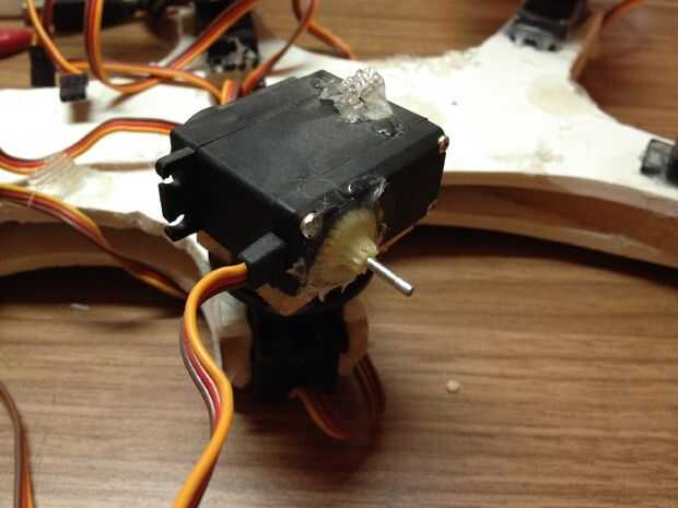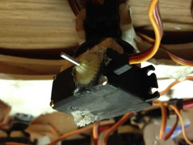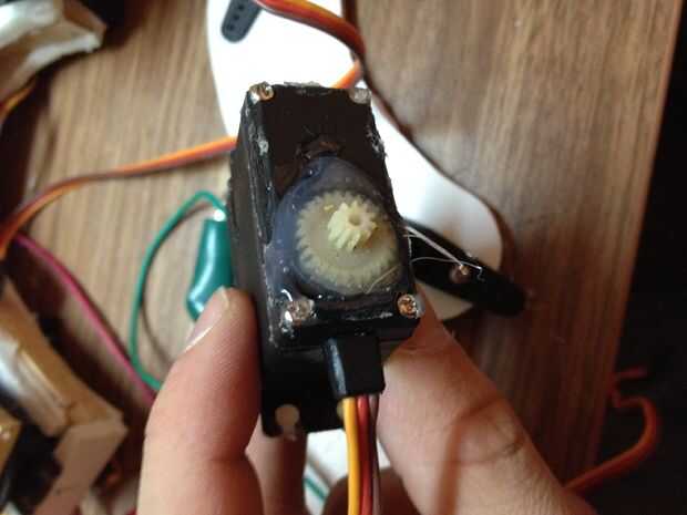 Yo pegado simples engranajes plásticos rotos en la parte posterior de los servos e inserte poco mils en ellos. Ver las fotos.