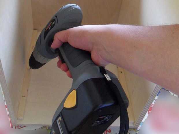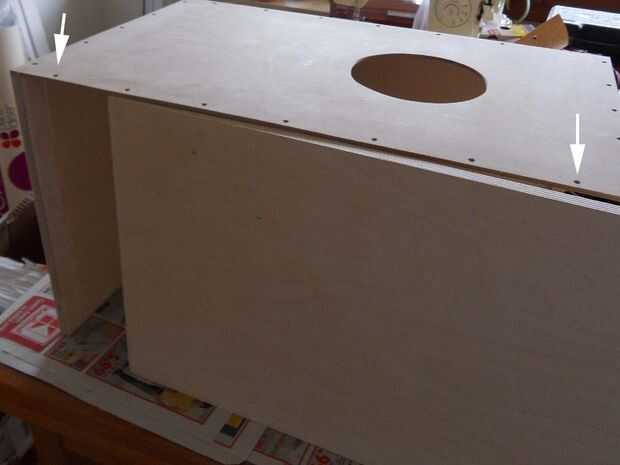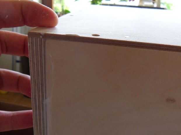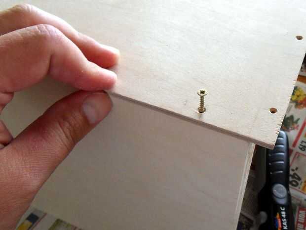 Ahora agregar el pegamento al borde de la segunda parte y la parte inferior. Deja secar unos minutos y juntar las dos partes. Asegúrese de que todas las aristas forman y comience a atornillar la parte posterior a la segunda parte de lado. Comience con el tornillo inferior cerca de la articulación, luego ajustar la parte superior e Inserte el segundo tornillo.