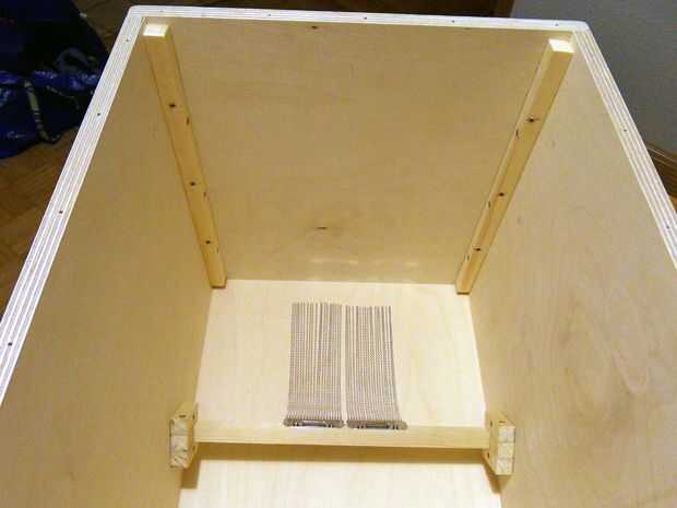 Mientras tanto construí un segundo cajón y tuvo que tomar otras trampas porque los viejos se agotaron y no quería esperar. Ahora, estas trampas son más rígidos que los demás y fijación del mismo modo dio lugar a un sonido muy apagado.