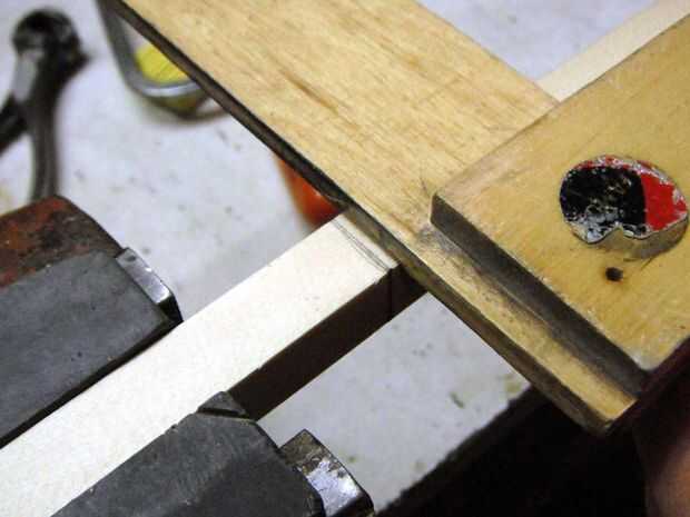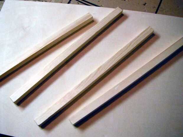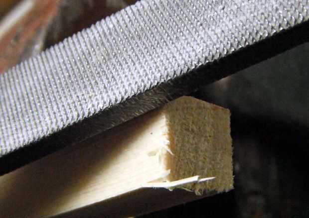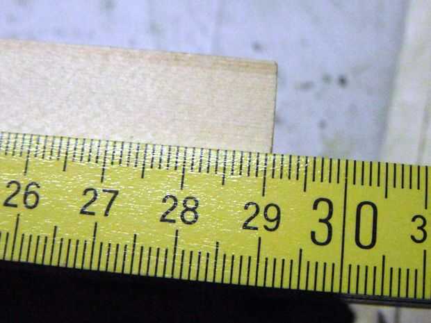 En primer lugar cortar el bloque rectangular de madera a las piezas deseadas de 290 mm. archivo abajo los bordes si hay cualquier astillas a la izquierda de la sierra.