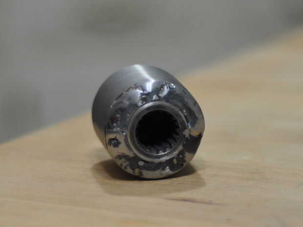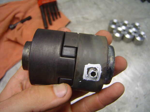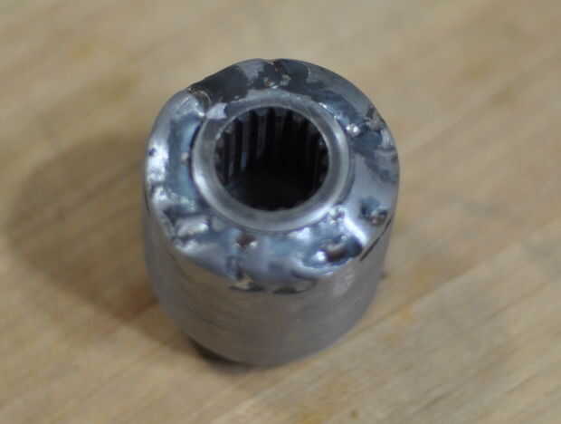 Reconstruido el acoplador (con la ayuda de algunos amigos - OK, habría perdido sin ellos...) por ambas ranuras hembra un trozo de placa de acero plana de la soldadura, la redondeo y agregando una chaqueta tubular.