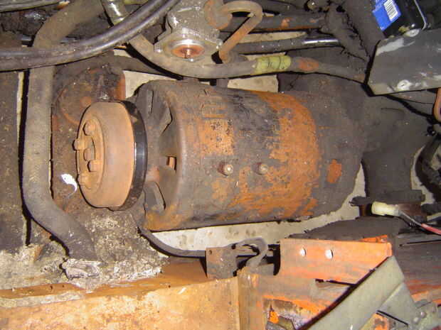 El motor estaba muy oxidado y grasiento, pero girar (no rápida ni fácilmente) cuando aplicado 12 voltios.