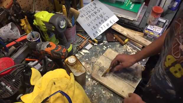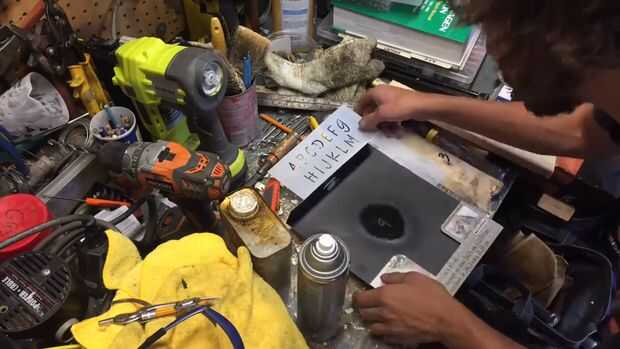 He comprado una plantilla con la fuente número me gustó y luego haga un agujero en la cartulina para que cuando rocía la pintura en aerosol sólo le pinta el número deseado.