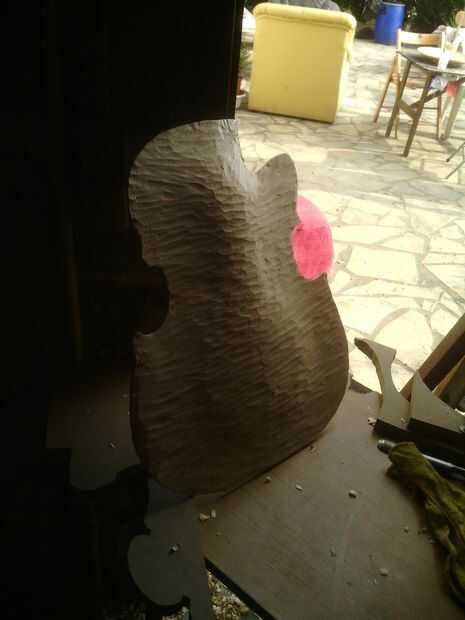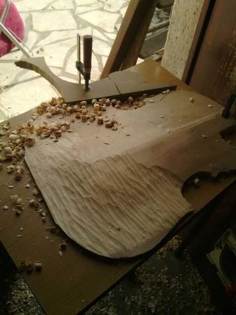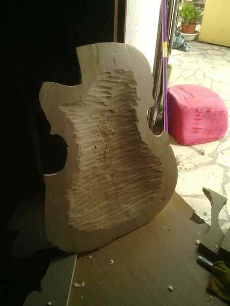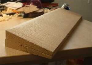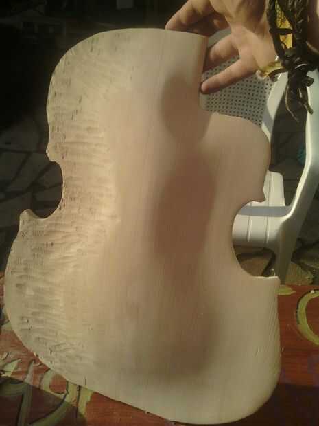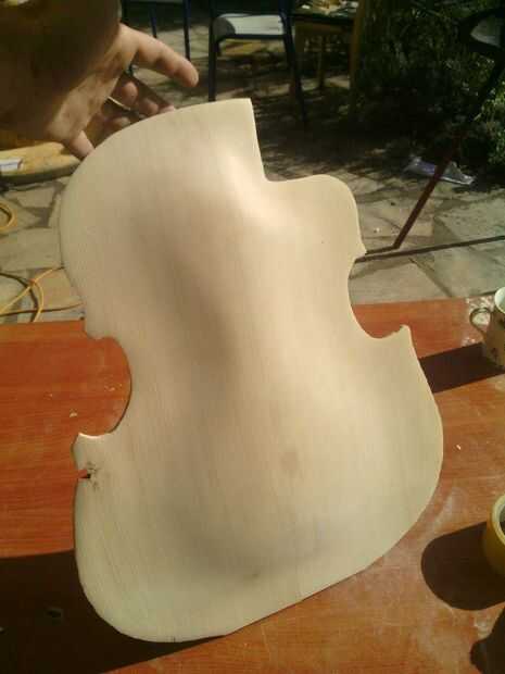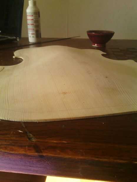 Theoricaly, para tener un sonido uniforme en el con tapa llana, la pieza de madera es cortada y pegada como un libro abierto es por eso que usted recibirá dos pieices de madera (si elegido para que sea como yo). Para preparar la madera a pegar tiene dos opciones: usted puede hacer por su cuenta pero necesitas herramientas,