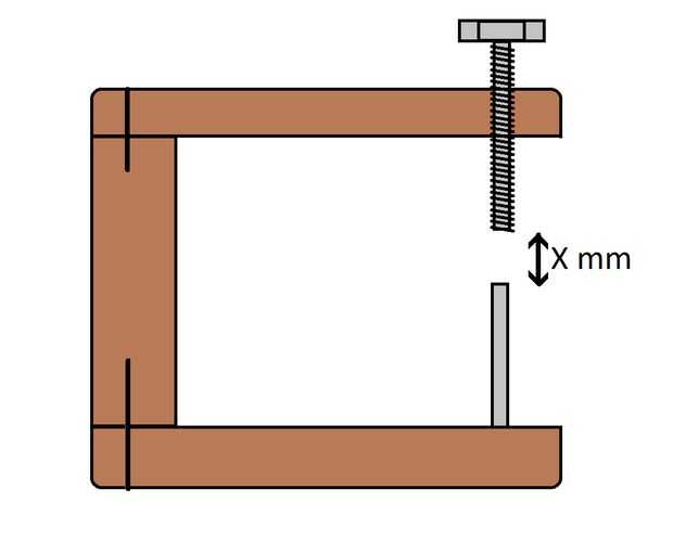 El grueso de su uso de con tapa llana verifie calibre o construir uno con pedazos de madera como en el esquema. Tornillo de la parte superior bold hasta la medida del espacio libre es igual al espesor que desee a verifie y pasa probadamente el con tapa llana todo con la herramienta.