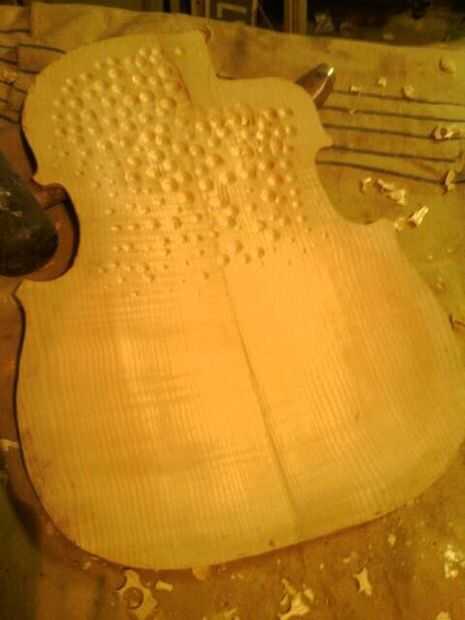 Este paso es más o menos como el con tapa llana como la única diferencia de que la madera es más difícil (en mi caso como piedra...) Así que me coosed para esculpir la parte posterior de la espalda durante la técnica del taladro... tenga cuidado el taladro puede ser verry stron y puede aplastar la Junta wwod! Así que si usted choosed que como yo no presione demasiado (puede borrar la llama hermosa de su madera). En mi próxima guitarra elegiré arce porque es mucho más fácil esculpir (más suave).