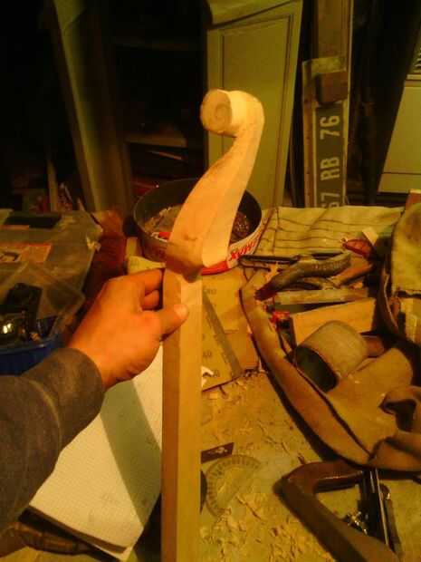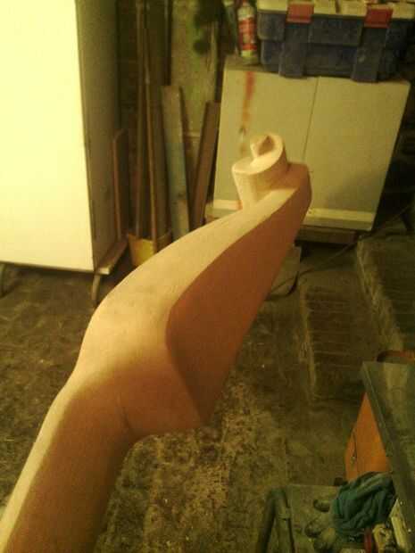 Una vez terminado el cuello puede iniciar el camino de la armadura. Comience doblando la barra de acero (una vez doblado tiene que ser de 1 cm de menos altura que el cuello y uno de los dos lados tiene que ser más grande que el otro - mira el esquema -> segundo cuadro-). Luego hacer el pequeño pedazo de acero y perfore dos agujeros en él (uno de los dos tiene que ser un taladro pasante).