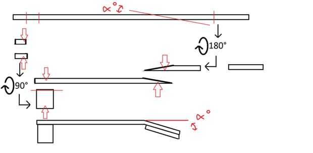 Comienzo cortando siguiendo el plan y sus dimensiones (primer cuadro). Para pegar piezas de primer plano con el arado. Cuando el pegamento esté seco utilizar el router para excavar el lugar del camino del braguero.