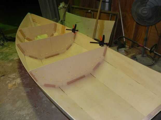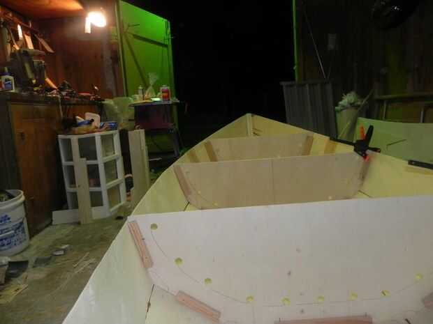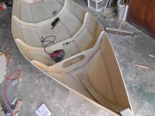 Usted también necesitará masilla y fibra de vidrio el interior del panel casco costuras en este punto.