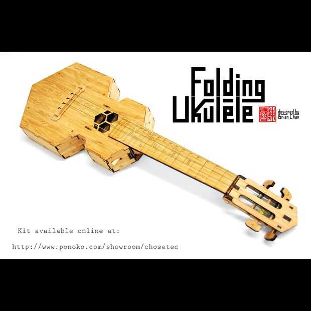 1) plegable Ukulele Kit, disponible en http://ponoko.com/showroom/chosetec