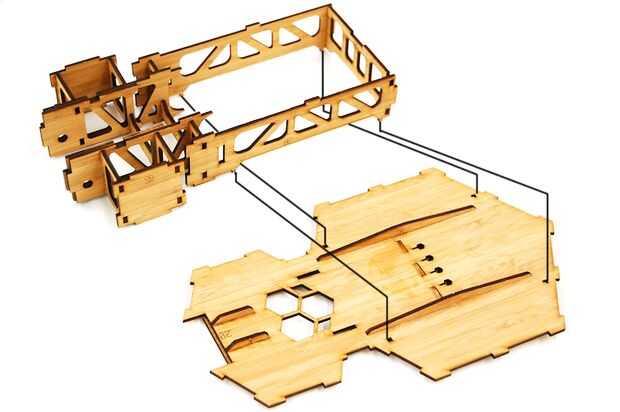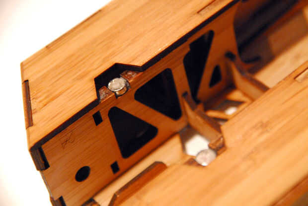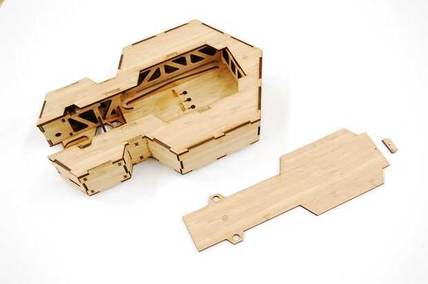 El endoesqueleto en la caja de resonancia, ajuste de prueba primero para asegurarse de que todas las lengüetas de ajustan bien el pegamento.