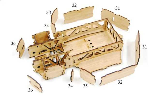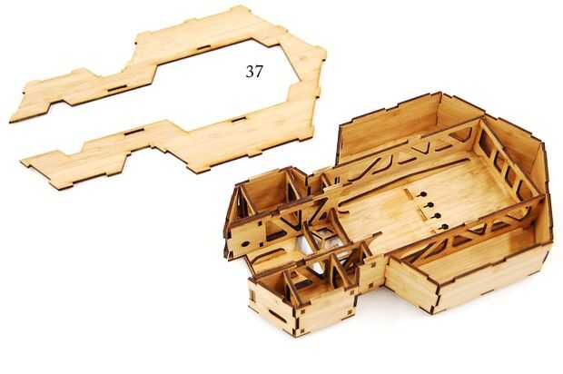 Fije los paneles laterales (piezas de 31, 32, 33, 34, 36) en la Asamblea. Asegúrese de que todos los paneles estén alineados verticalmente. Desea parte de dry-fit 37 mientras que encolar los paneles. Después de todos los paneles estén en su lugar, pegar parte 37 en todo el conjunto, asegurándose de colocar todas las fichas correctamente.