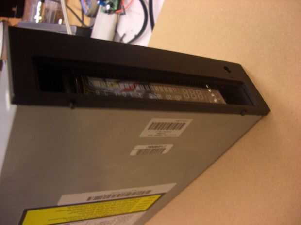 Tomar la placa ahora seca y poner alguna ventana acrílico dentro de la abertura de la gaveta de CD-ROM. Si te gusta puede salir del agujero, creo que queda mejor si cierra el orificio con una ventana. Las fotos son tomadas sin la ventana porque dejó una huella en él mientras lija los bordes y es necesario construir una nueva. Le puse en más adelante...