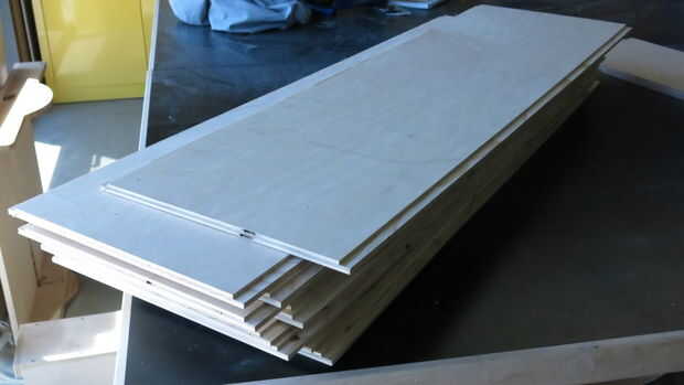 Los rebajos Haz corte en los paneles frontal y posterior. Puso el waaay paneles de lado al lado en alguna parte para que al tomar esa llamada inevitable inadvertidamente no ejecutar los paneles mal a través de la sierra. Si estás teniendo pista, estoy haciendo seis bases así que tengo 12 paneles frontal y posterior. Es 24 rebajos para cortar.