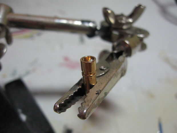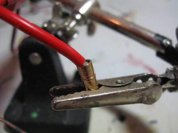 3. pegar alambre con bola de soldadura en el conector de oro (ver primera foto para ver de qué lado, hay un final en el fondo).